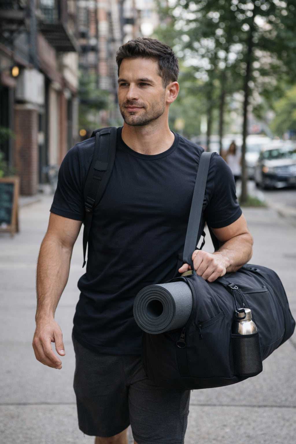 Padded shoulder straps and an included yoga strap let you move hands-free and hassle-free — from studio to street.